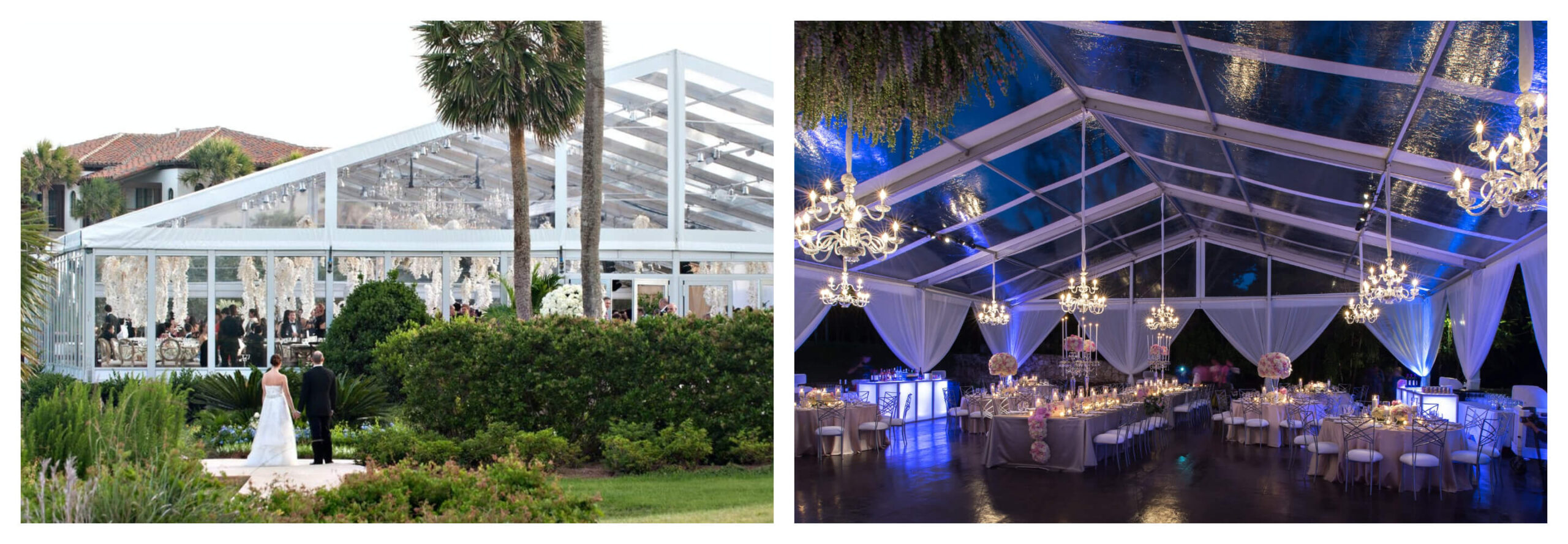 Choice for parties and at the same time in the outdoor, of course, can’t afford to waste the beautiful outdoor landscape, banquet tent can be used in a completely transparent design, also can choose glass walls around to decorate, very good solve the problem the daylighting of the banquet tent, make the space more capacious and bright, let the guests around the dining at the same time can also see the beauty, such a social atmosphere.