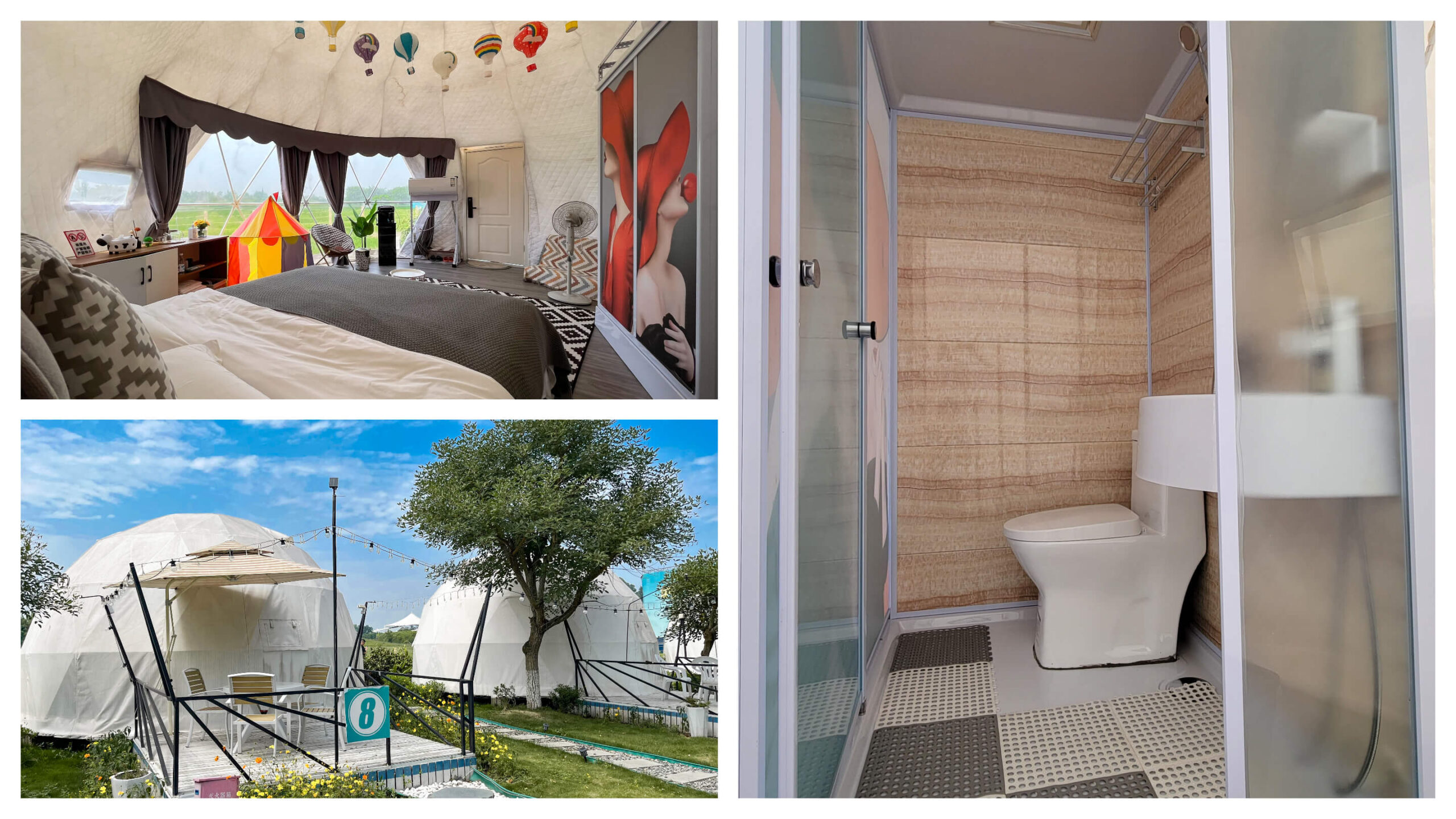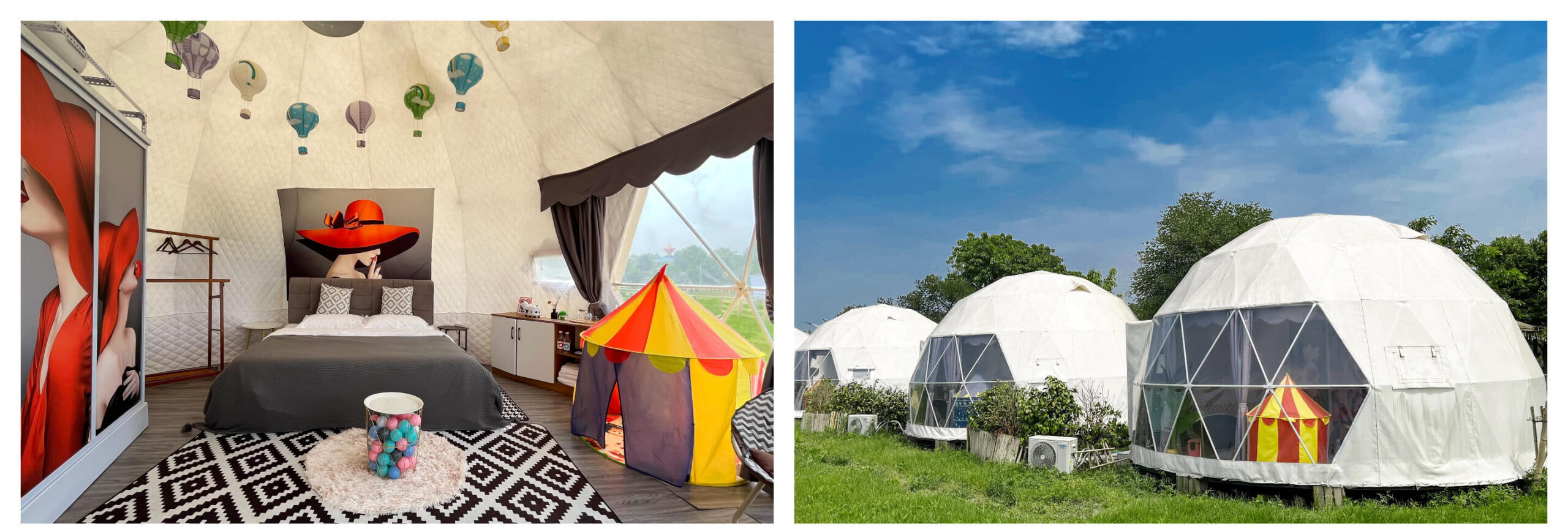 The glamping site in the city is composed of several. Highland grass, boundless greenery with sheep grazing, boundless starry sky, reach out to pick the stars. The glamping site mainly consists of dome tents and safari tents. It¡¯s full of flowers and green grass, and the tents and the beautiful scenery intermingle to depict a unique beauty.