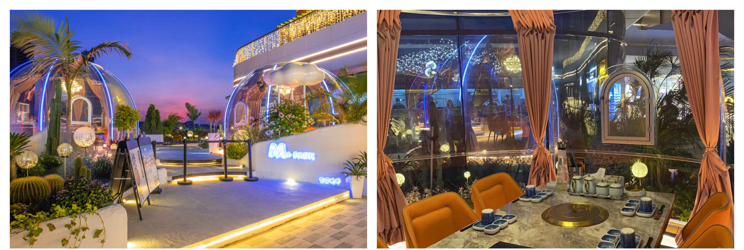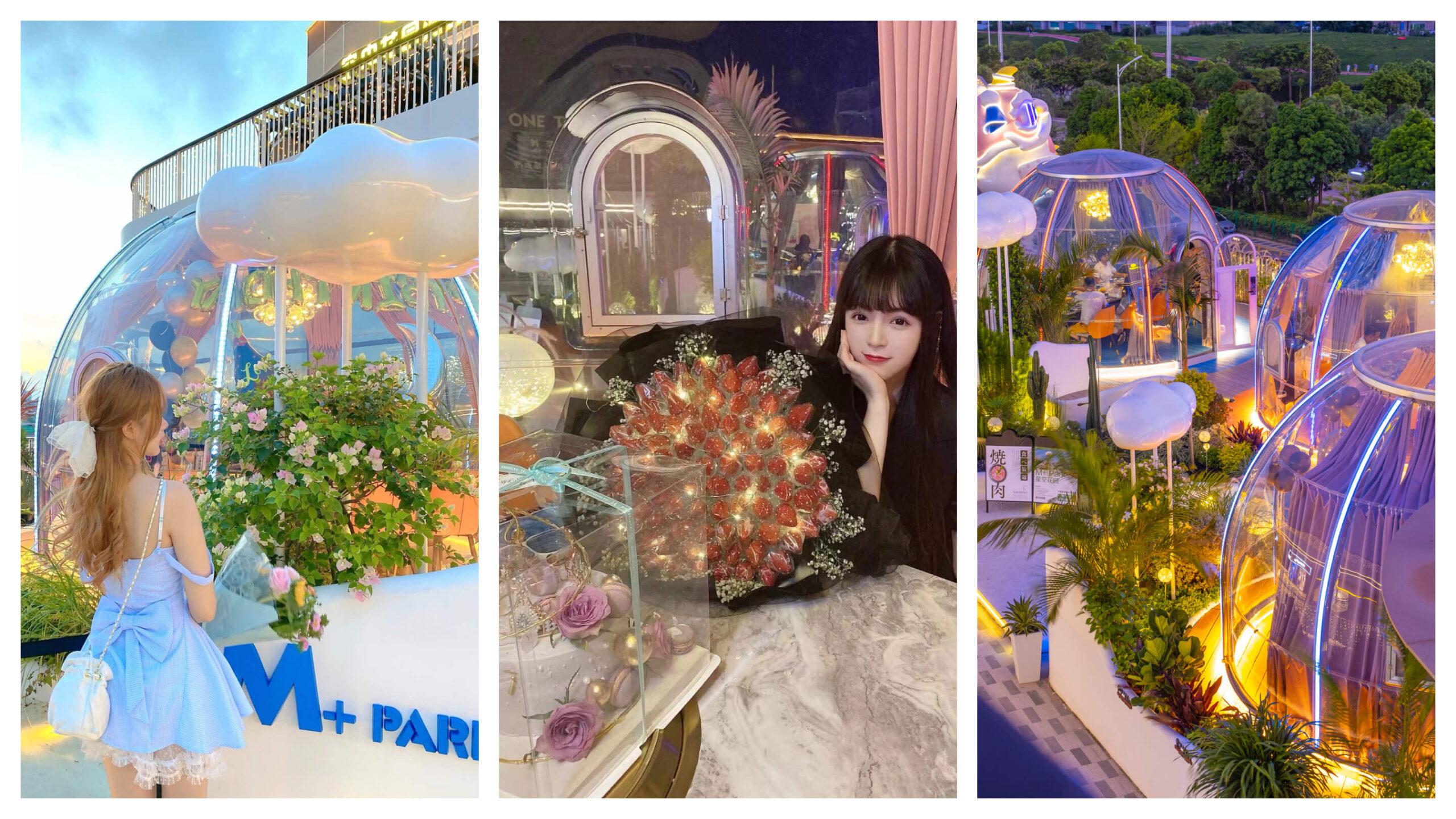 This is a barbecue shop in Huizhou City, Guangdong Province. The transparent polycarbonate bubble dome tent is decorated with flowers and green plants, and instantly captures the hearts of all girls. It is full of INS style, which is very suitable for couples, parents and children to dine and take photos
