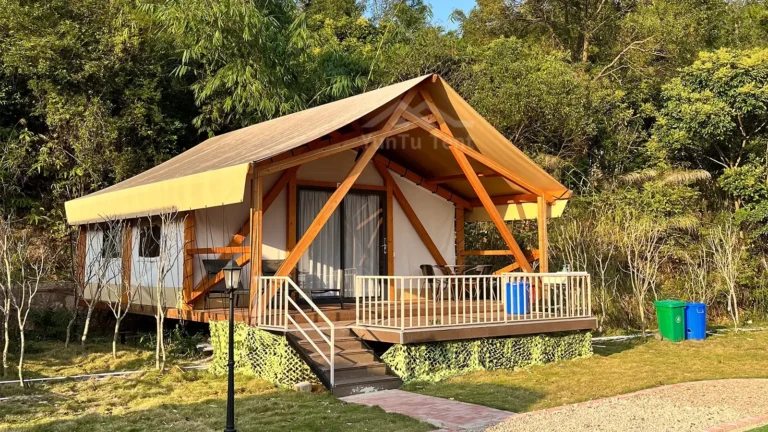YunTu Glamping Superstar Tent uses steel pole as frame material. 850g/sqm PVC cover and 900D oxford canvas will be used…