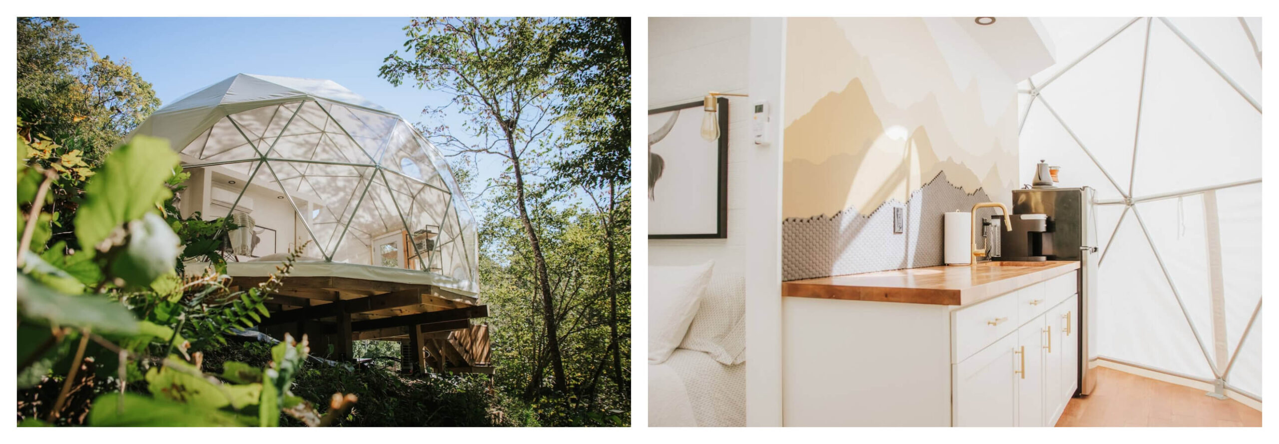 Outdoor Eco Glamping Dome Tent is easy to fully equipped with household facilities, appliances, kitchenware and can be easily installed everywhere to provide a unique, comfortable, and peaceful living experience. So it is widely used for resorts, glamping sites, campgrounds, hotels, and Airbnb hosting.