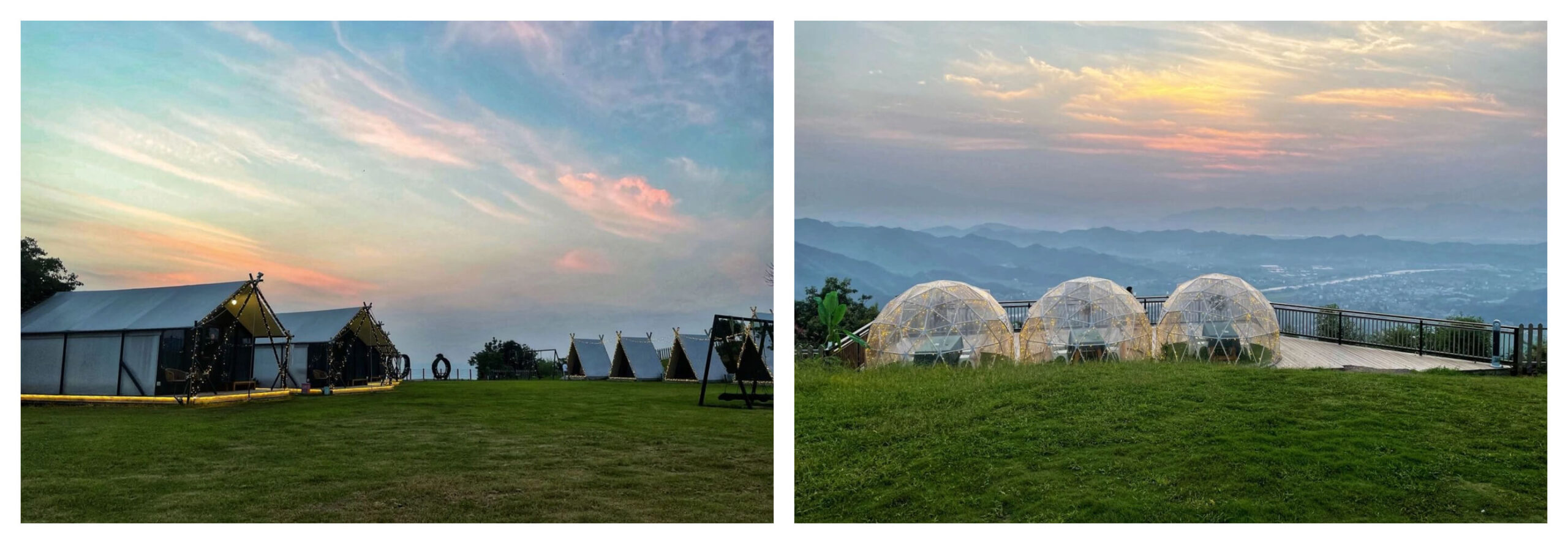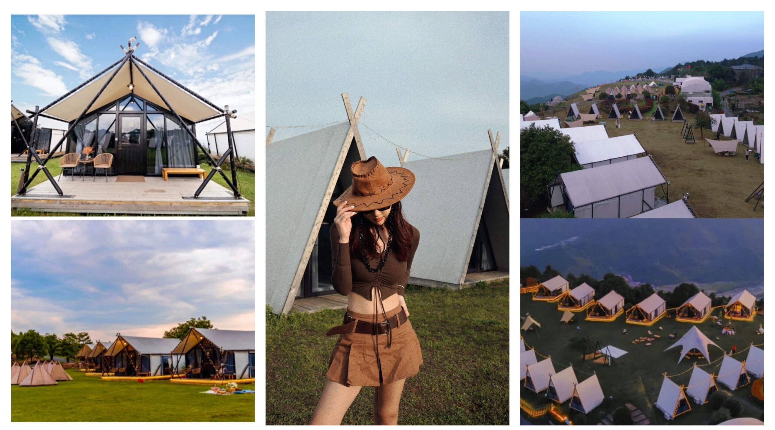 Der Glamping Tent site is a large lawn with a wide field of vision and close to the city. Tourists can overlook the night view of the city at night, with complete supporting facilities. In the evening, there are open-air movies and large screens with high-definition pictures to watch movies together, to enjoy the magic evening together.