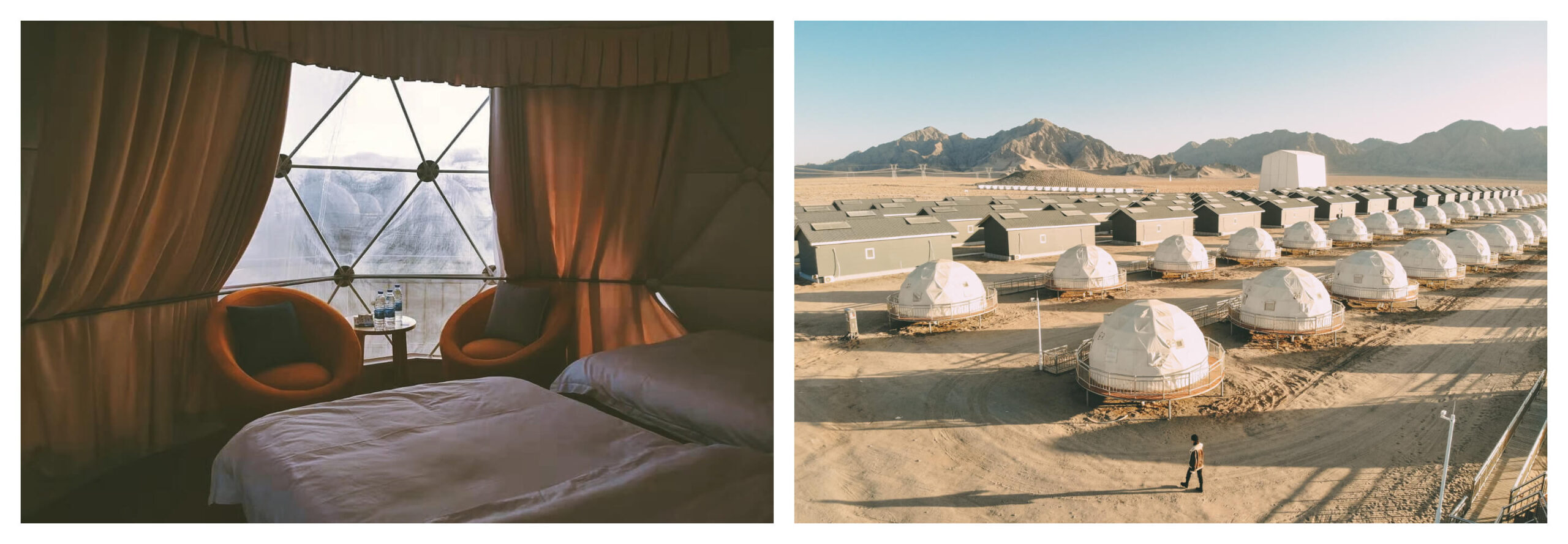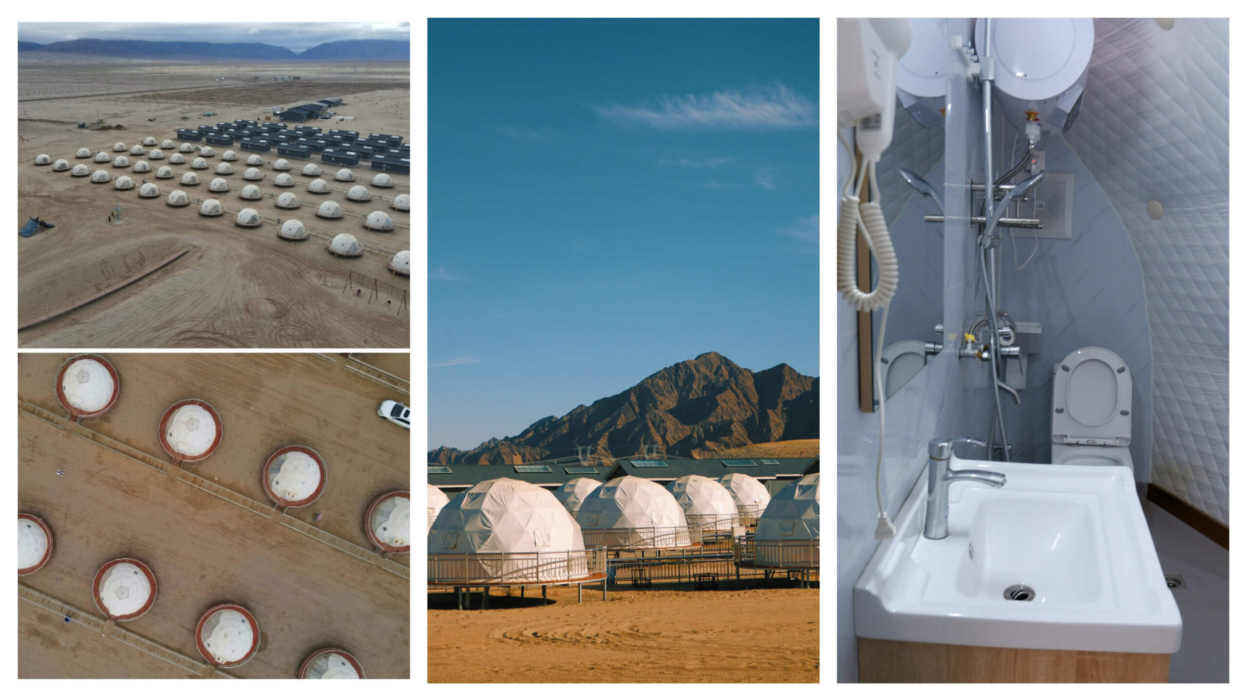 Want to see the beautiful starry sky under the desert? The geodesic dome tent glamping project is located in five sandbags near National Highway 3011 in Dachaidan Town, Haixi Mongolian and Tibetan Autonomous Prefecture. Located in the desert, next to the grassland. Backed by sand dunes and facing the starry sky, it has become a desirable glamping choice for Dachaidan. This glamping site brings you a great shock. This desolate place has developed a glamping site with geodätisches Kuppelzelt, which fully reflects the strong strength of the developer, because catering and water pollution are difficult to solve here. YunTu¡¯s Glamping-Kuppelzelt has effectively and perfectly solved these problems.