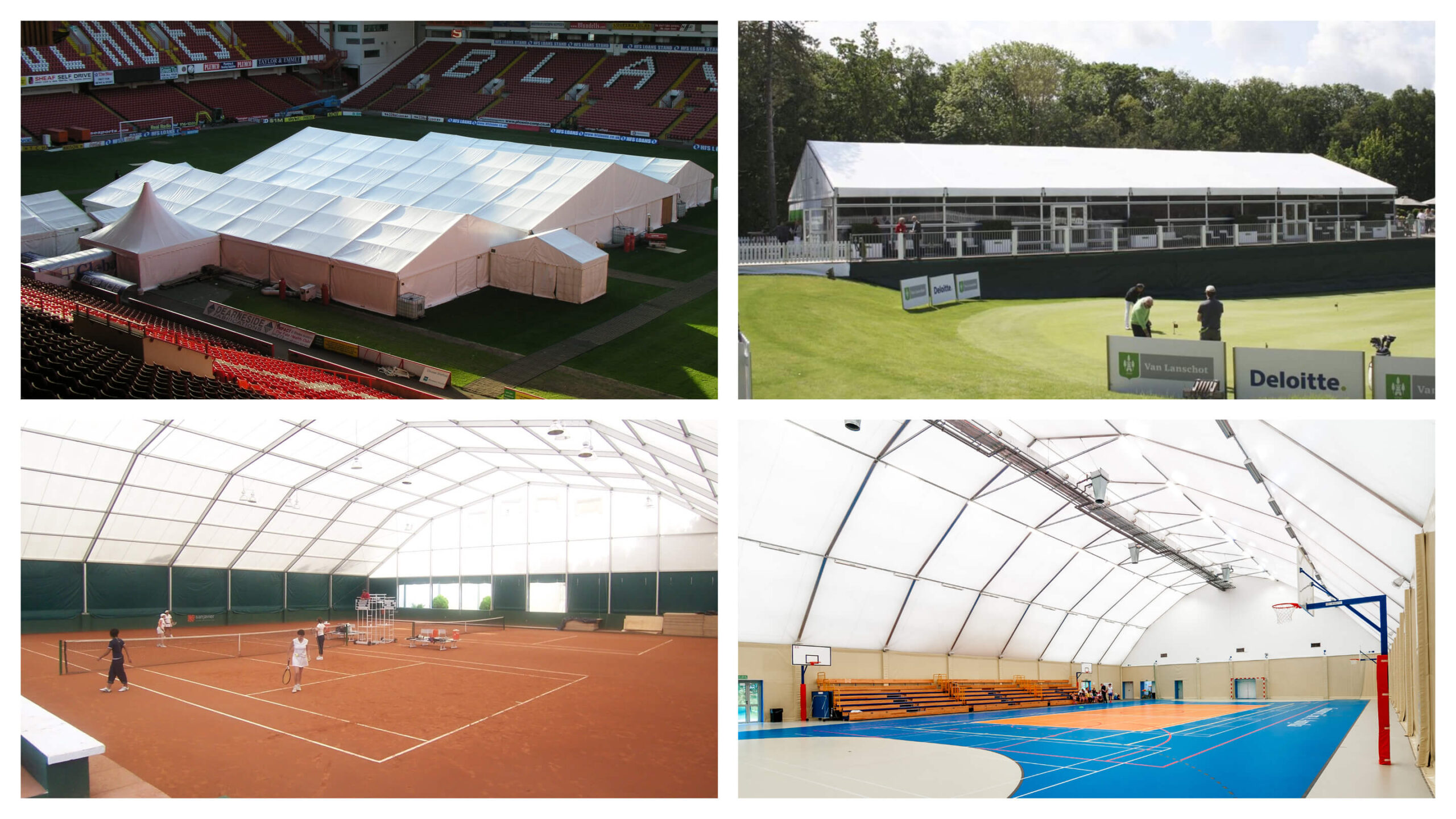 As an all-weather tennis marquee tent, it is not affected by the weather and enjoys the joy of sports at any time. The large span design does not need column support inside, and the competing open space is especially suitable for ball sports arena. Compared with traditional rigid roofs, indoor padel tennis courts can make better use of natural lighting, while being waterproof, flame retardant and UV resistant. As with traditional indoor venues, the interior of the tennis marquee tent can be equipped with sports hall special lighting, badminton PVC plastic sports flooring and air conditioning and other supporting facilities.