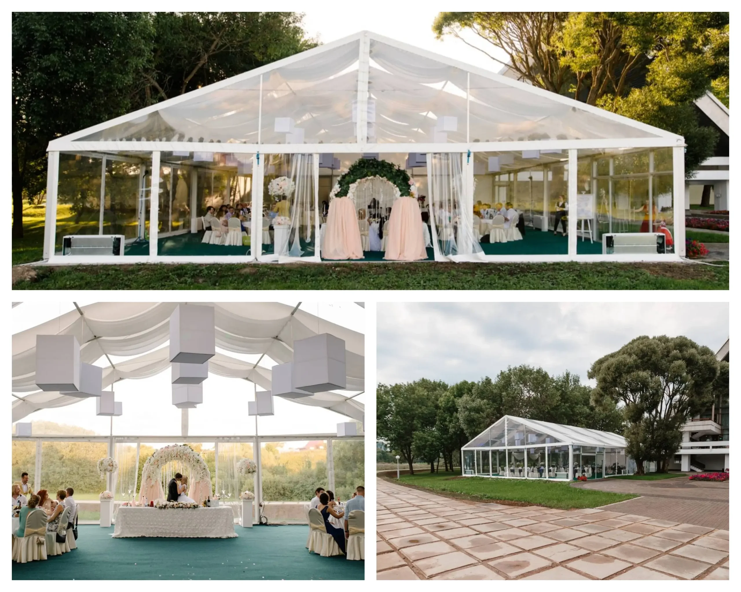 Se desideri organizzare un matrimonio all'aperto a contatto con la natura ma sei preoccupato per l'instabilità del tempo e della temperatura, evento di nozze con tende trasparenti sono un buon modo per godersi allo stesso tempo la bellezza degli spazi aperti e il comfort degli spazi interni. Inoltre, la disposizione e il design creativo della tenda possono rendere l'intero matrimonio più luogo dal punto di vista visivo, più bello e romantico.
