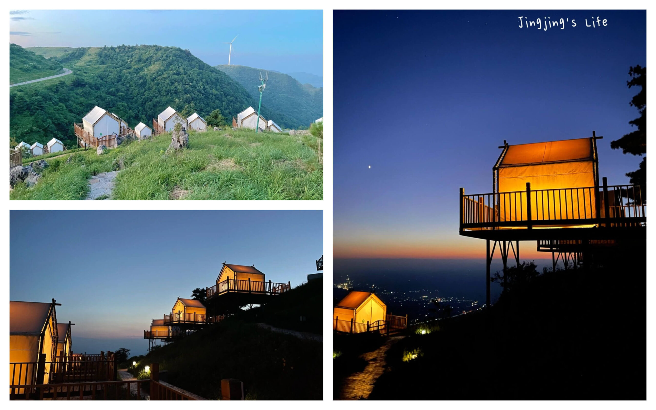 Safari Glamping Tent is divided into two bedrooms and a living room. Each bedroom can accommodate two people and the space is very comfortable. Both bedrooms are equipped with suitable King side bed, soft duvet, tables and chairs. In the living area, there is a sofa bed, dining table and chair, mini kitchen with electric stove, refrigerator and microwave oven. In summer, enjoy the cool feeling brought by the beer in the refrigerator. In addition, Safari tent also provides all tableware and cooking tools. Each tent has a private area equipped with water and electricity system and a wooden platform in front of the balcony. You can roast beef, make salad, drink red wine, chat and enjoy outdoor time with your friends. You can see the magnificent rural scenery. Sitting on the balcony, you can also see a touch of blue sea. In the Swiss Beach Resort Park, the tent is located on the mountain, directly facing the sea, where you can sit on the balcony and watch the sunset.