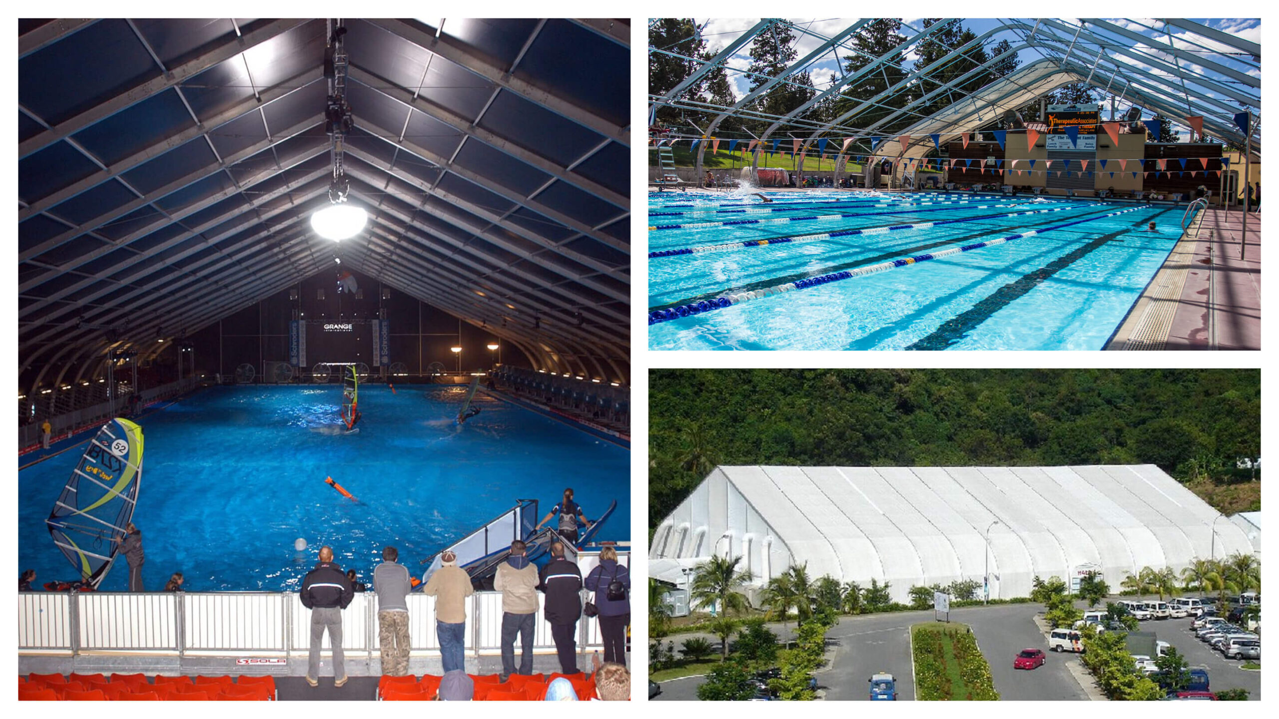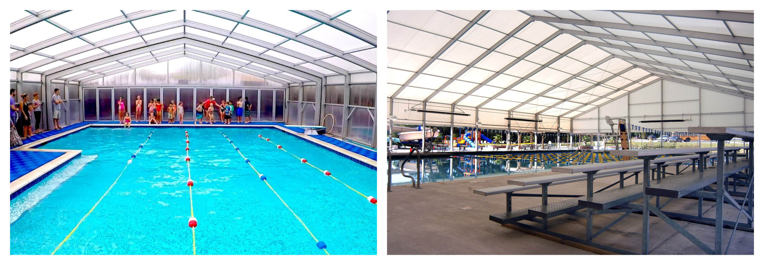 IL swimming pool marquee tent has a large span, and can provide a variety of spans from 6m-60m. There are no special requirements for the construction site, generally flat ground such as sand, grass, asphalt, concrete and tile ground are available.