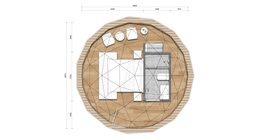 In designing the glazing glass dome, yuntu designers have taken into account the issues of lighting and privacy, adopted 1/3 transparent glass as the viewing area, equipped with shading curtains, and provided high-quality accommodation conditions.