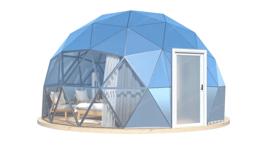Transparent glass dome is the first choice for Eco house and greenhouse planting due to its very good daylighting effect. The coated colored glass dome is very suitable for accommodation. It has excellent shading and heat insulation effects.