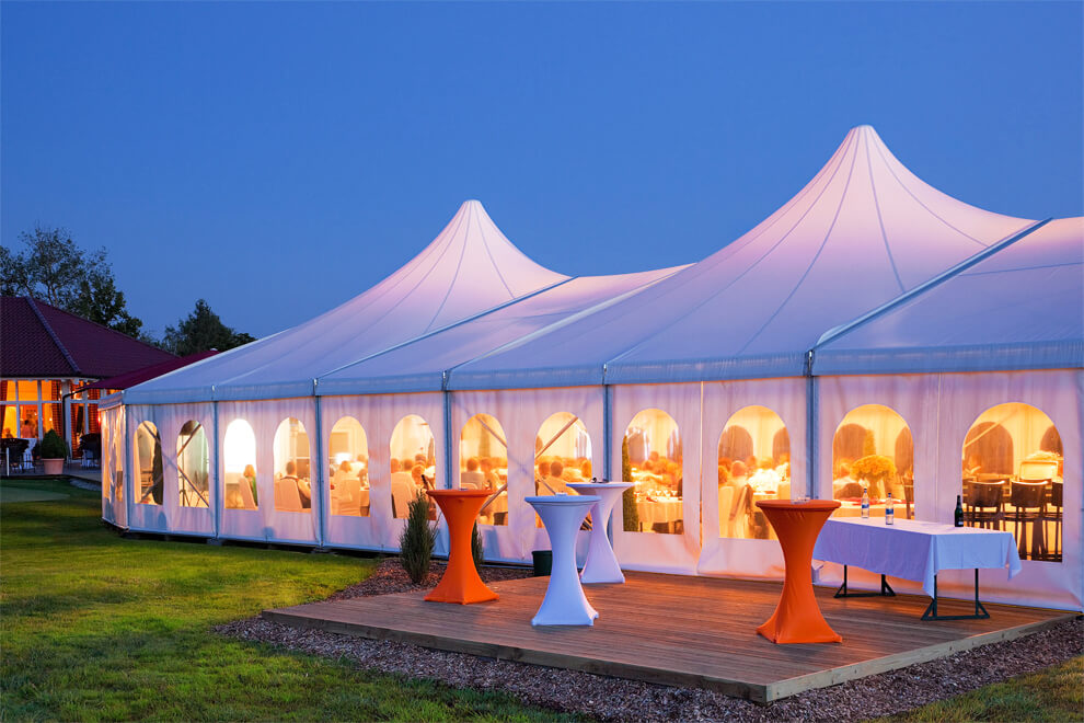 Mixed Tent frame is made of hard pressed extruded aluminum alloy (6061/T6), stress character is very strong, wind load is grade 10-12. It it durable that you can use it as a temporary building or semi-permanent building.And the cover material made by PVC-coated polyester fabric, It has waterproof, fire retardant and anti-aging function. Its unique mixed