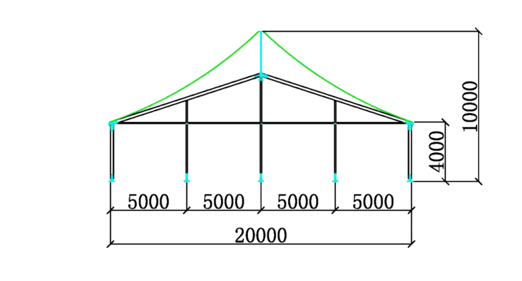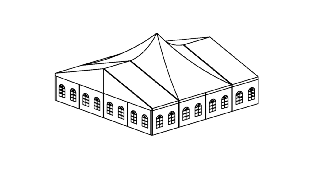 The high peak tent are able to be joint with the regular A shape tents, high peak unit to become a mixed tent. Combination tents mainly combine several types of tents according to the needs of users. Usually, polygon tents and spire tents are mixed and spliced to form tents of various special shapes. Good visual effects, often used in high-end gorgeous outdoor activities.