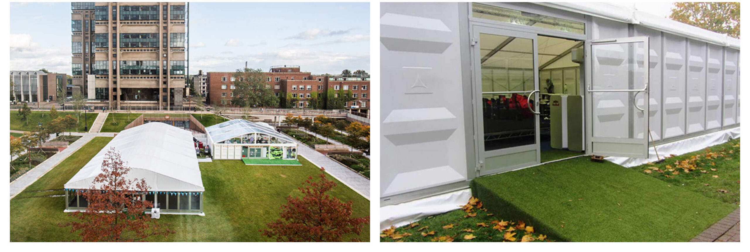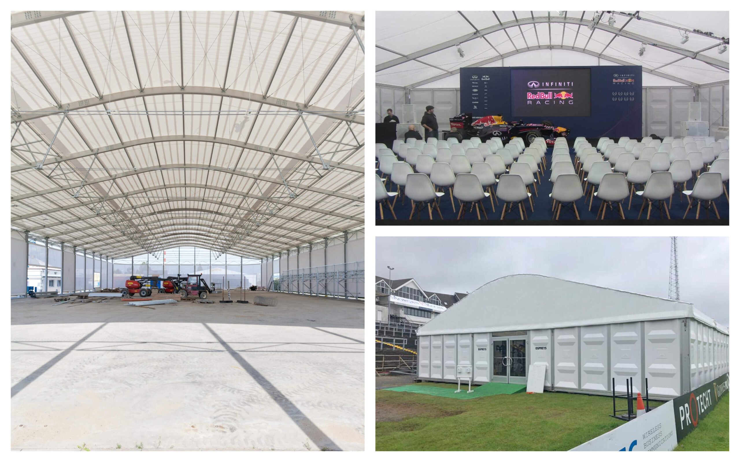 The arch tent is equipped with a glass wall, which is very appropriate to the style of the 4S store. What’s worth mentioning is that the roof wall of the arch tent has been improved and innovated to add banner advertising space to provide customers with a better platform for print advertising. At a glance, it gives people a simple and fashionable feeling, foreign and deep without losing the high-end luxury feeling of international style.