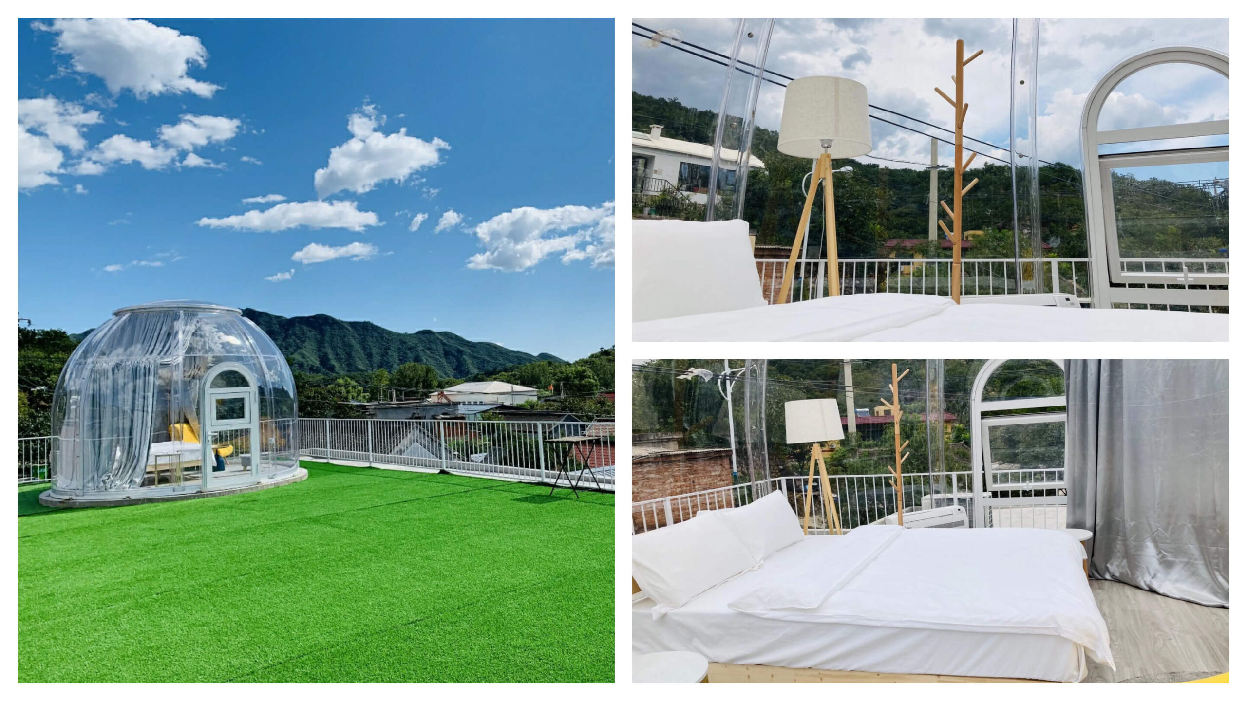 The Rainy Mountain Front Camping Group is located in Beijing, with the beautiful River flowing through the village and the majestic mountains surrounding it. Every time you go to a luxury glamping, it is a joyful getaway for people in the city. Some people say that choosing a dome house tent is choosing a life, and staying in a transparent PC dome house is choosing a way of life. Choose an outdoor PC dome house get close to the splendor, get away from the hustle and bustle of the city and enjoy the night under the stars, romantic and intoxicating.